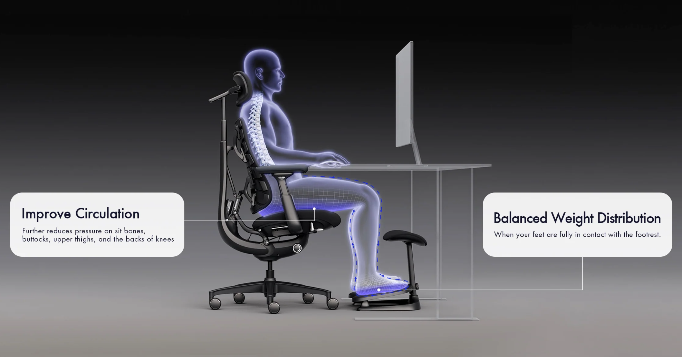 StepSync Footrest — Versatile Comfort for Every Scenario Ergonomic Support for Better Circulation and Comfort! - Relieve Leg Fatigue: 10° ergonomic tilt promotes healthy circulation, ideal for long hours at your desk. - Zero-Gravity Comfort: Pair with the Omni Chair’s 160° recline for ultimate relaxation. - Customizable Fit: Two height options (2.76′′ & 4.72′′) suit users from 5'0" to 6'1". - Premium Materials: Micro-textured elastic fabric and aerospace-grade resilient base ensure lasting comfort and durability.